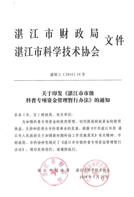 附件:1、湛江市市级科普专项资金管理暂行办法;
