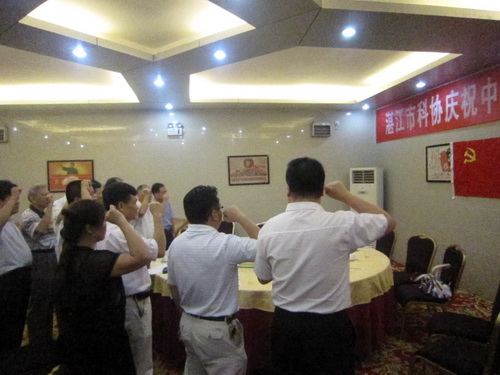 会议由机关党支部书记陈法宝同志主持,市科协党组书记、主席黄东云同志作了热情洋溢的讲话,并赋诗一首歌颂党的丰功伟绩。副主席陈让、朱雨轮、郭向明等同志分别作了讲话。会议期间,全体党员面对党旗重温入党誓词;一起合唱没有共产党就没有新中国。