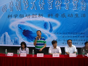 湛江市科协郭主席为本次活动致辞,他说,本次活动活动能使同学们通过自己的双手来创造属于自己的科学小制作,展现自己创新的一面,同时,他希望同学们能带着自己的物理科学小制作走出校园,走出社会,让更多的人关注和参加各类科普活动,特别是带动中小学生积极参与此类活动,让他们探索科学的奥秘,增加对科学的了解。