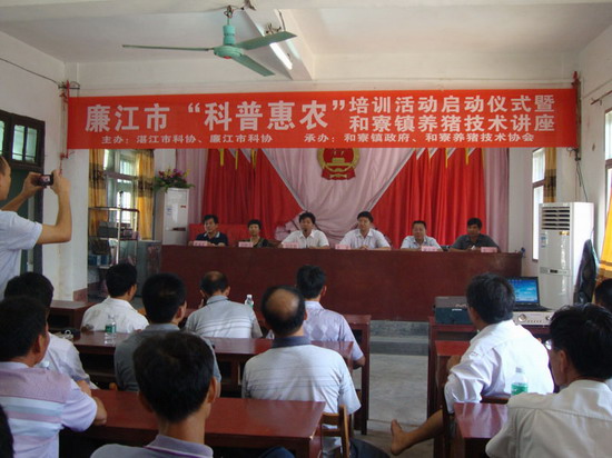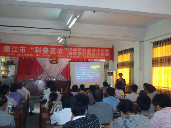 由湛江廉江两市科协主办寮镇政府和寮镇养猪技术协会承办