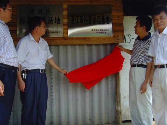 上午,前来参加遂溪县科技进步一条街活动的市科协主席黄东云、副主席朱雨轮、科普部部长黄振洪,到该县灿蓝蔬菜种植园,为该园被命名为“湛江市科普示范基地”挂牌。遂溪县灿蓝蔬菜种植园是一家专门引进、推广、种植野生保健蔬菜的民营企业。该园与国内多个蔬菜研究所和种植基地建立了长期合作关系,专门引进、推广、种植野生保健蔬菜,目前已成功引进、推广、种植的品种有