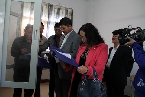 市科协主席肖斌(左四)、副主席许进(前一)在查看档案资料