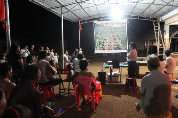 今年第9号强台风“威尔逊”过后,为提高广大农民群众的科技文化素质和生产技能,增强他们依靠科技致富的本领,湛江市科协大力开展“科普实训下乡”活动。在考虑到农民白天要劳作不便等因素,市科协决定将培训送到乡下,送到广大农民兄弟家门口,先后联合徐闻县科协深入前山、迈陈、南山等乡镇农村,实行夜晚举办农业实用技术知识“培训夜校”,聘请多名有丰富教学经验的农艺师讲课。课堂上,授课老师采取理论与实际操作相结合的方式,手把手的教农民兄弟掌握菠萝、木瓜、韭菜、香蕉等种植技术,让他们白天能劳作,晚上能学习。