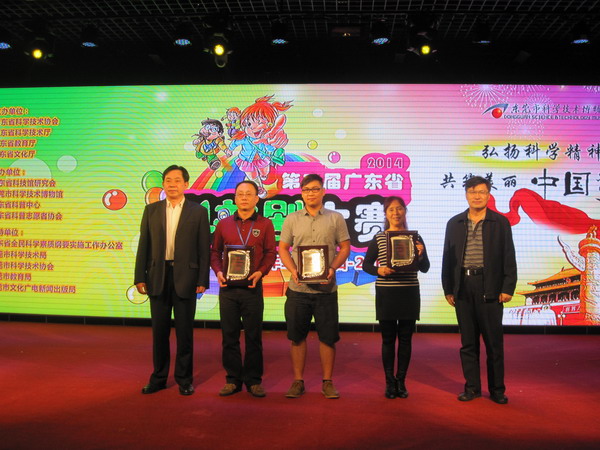 广东省科协党组书记、副主席何真代表主办方致辞。省科协党组成员、副主席吴焕泉,省科技厅党组成员、副厅长叶景图,省文化厅艺术处(教育科技处)调研员张树,省教育研究院调研员李文郁,省科技厅政策法规处副调研员夏兴林,省科协科普部部长黄善辉,东莞市科协党组书记、主席连希波,东莞市科技局党组书记、局长刘宁等领导和嘉宾出席了颁奖活动。东莞市科技馆馆长李志明主持了颁奖活动。