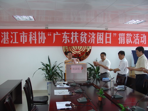 经国务院批准,自今年起每年6月30日为“广东扶贫济困日”。湛江市科协根据省委、省政府的部署,围绕“扶贫济困、共建和谐”主题积极开展活动。在29日的“湛江市科协‘广东扶贫济困日'捐款活动”中,湛江市科协全体职工奉献爱心,踊跃捐献,共捐出现金壹万多元。