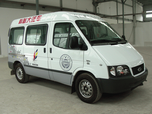 该车选用江铃全顺轻型客车改装而成,车身系全金属客车型车身、承载式底盘、右侧带侧拉门、驱动形式为后轮驱动、柴油发动机,国Ⅲ排放标准,排量为2.771升,长4666 mm,宽1974 mm,高2228 mm,包括驾驶员共可乘坐6人。车厢内设置有工作台,供使用单位放置科普设备及资料。并在车厢后部留有一定的空间,方便放置科普用品。后部设置有投影幕及有源音箱,连接配置的多媒体硬盘播放器、投影机即可进行影音播放。该车可以实现广播宣传、多媒体教学、现场咨询、资料的发放、影视资料的播放等科普功能。