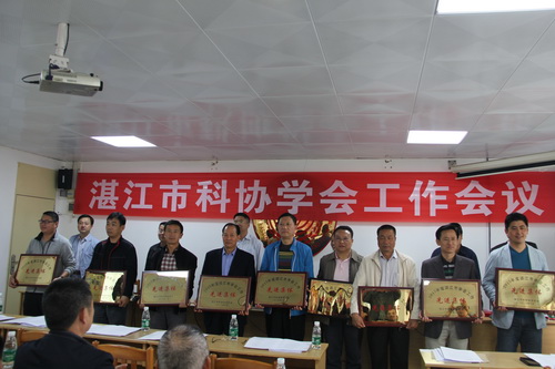 郭向明副主席宣读《关于表彰湛江市科协2015年度学会工作先进集体和先进工作者的决定》,对在2015年度学会工作中做出显著成绩的湛江市医学会等18个学会授予“学会工作先进集体”称号和对叶富良等19名同志授予“学会先进工作者”称号。