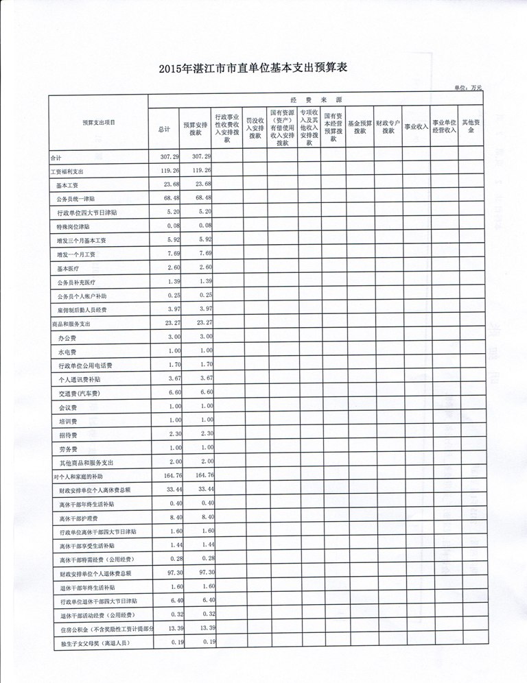2015年湛江市科协部门基本支出预算表