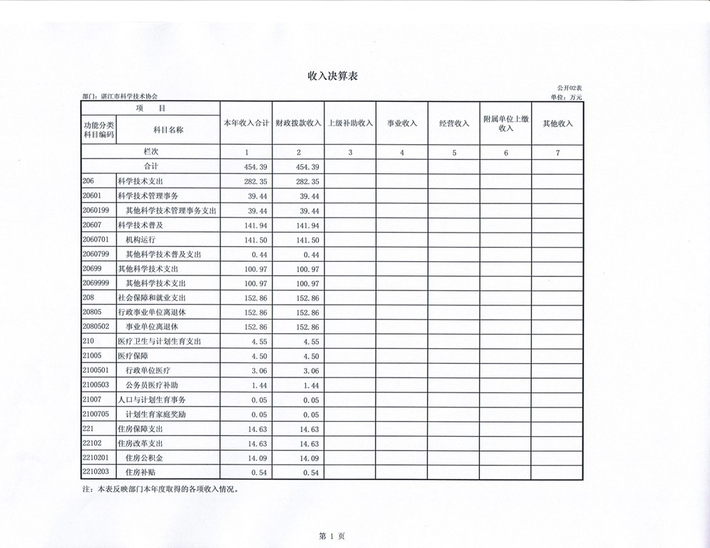 2014年湛江市科协收入决算表