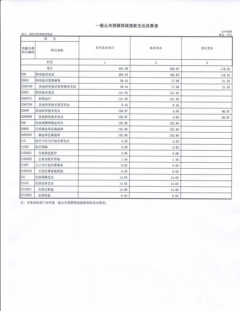 2014年湛江市科协一般公共预算财政拨款支出决算表
