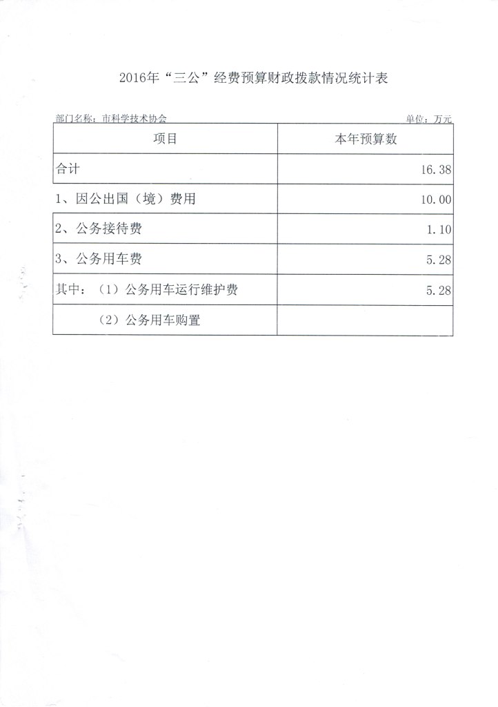 2016年湛江市科协“三公”经费预算财政拨款情况统计表
