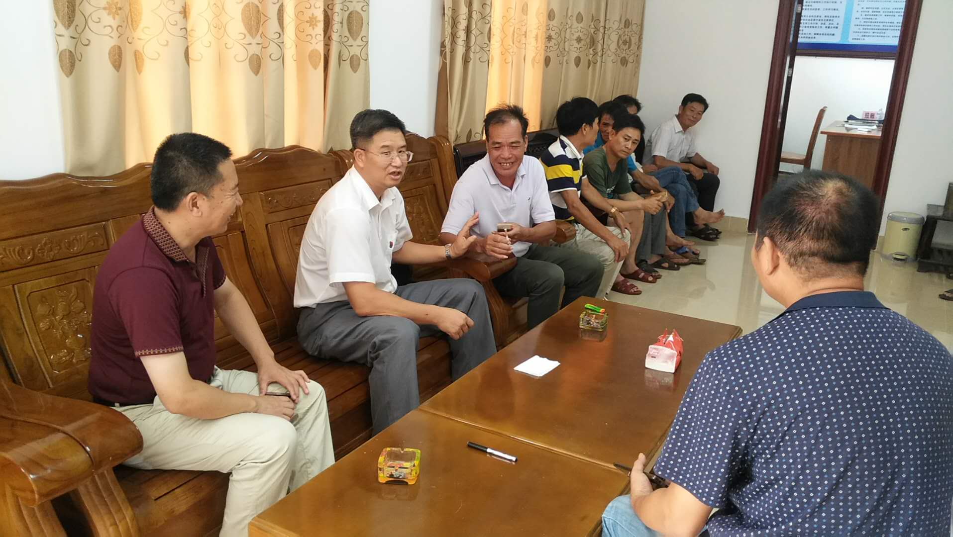 调研的第二站是覃斗镇海边村。肖斌主席与镇村两级干部群众以及顺德扶贫工作组的同志进行了深入的交流探讨,对前期建设的道路、路灯、篮球场、光伏项目给予肯定,同时对下一步建设新农村,开发利用村红树林、海边农宿建设提出指导建议。镇村两级干部对肖斌主席的到访调研表示感激,他们表示市科协两年多来大力支持村扶贫工作,从人员和经费上给予了实实在在的支持,发挥优势在村党建、农科培训、项目规划上发挥了重要作用。